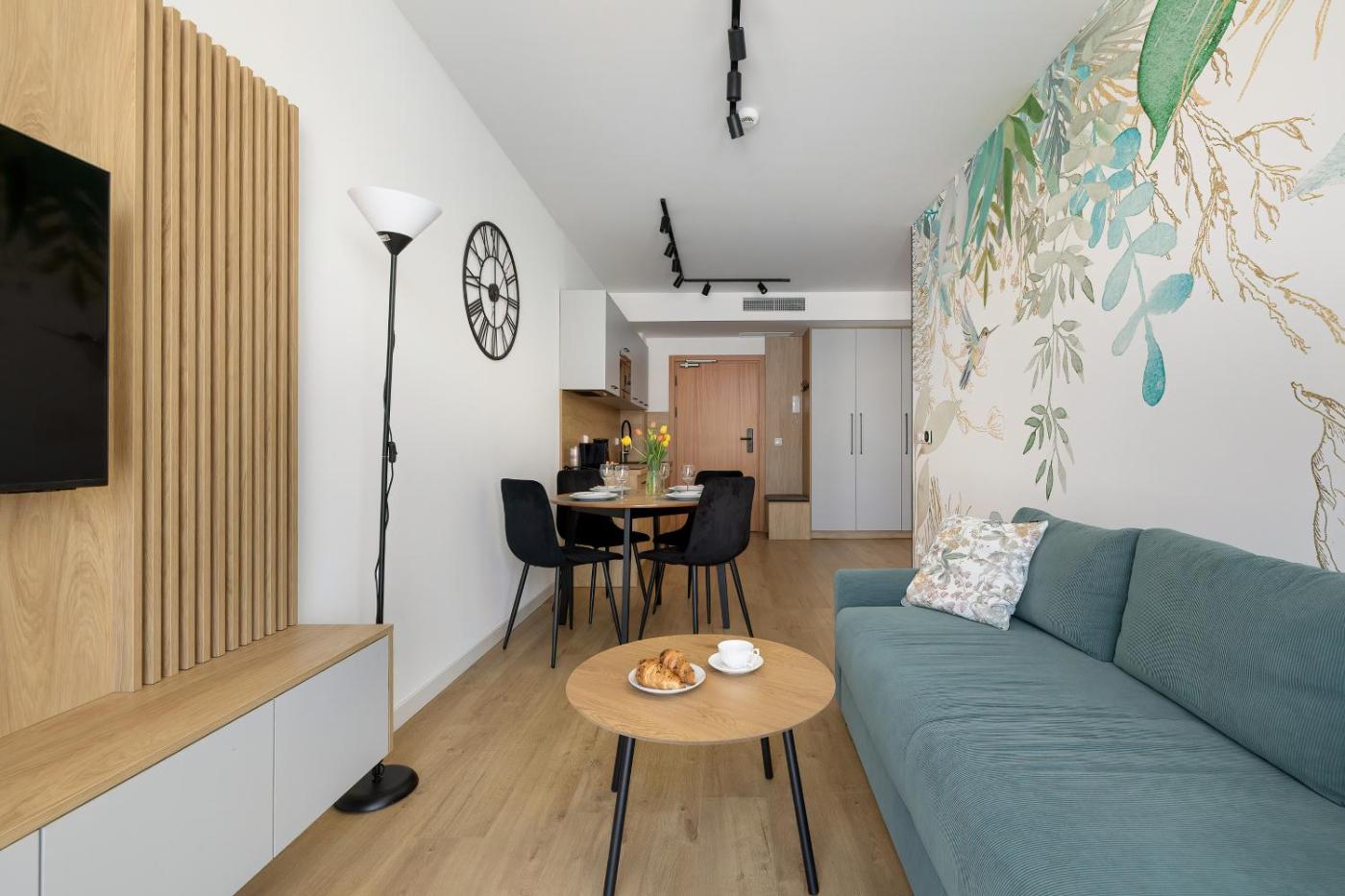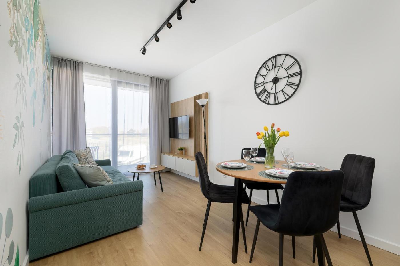 Apartament z 1 sypialnią i balkonem. Featuring a private entrance, this air-conditioned apartment comprises 1 living room, 1 separate bedroom and 1 bathroom with a shower and a hairdryer. Meals can be prepared in the well-fitted kitchenette, which comes with a stovetop, a refrigerator, a dishwasher and kitchenware. Boasting a balcony, this apartment also provides a tea and coffee maker, a seating area and a flat-screen TV with streaming services. The unit offers 2 beds. Apartament - 5 osobowy. Powierzchnia pokoju ok.: 37 mkw. ;